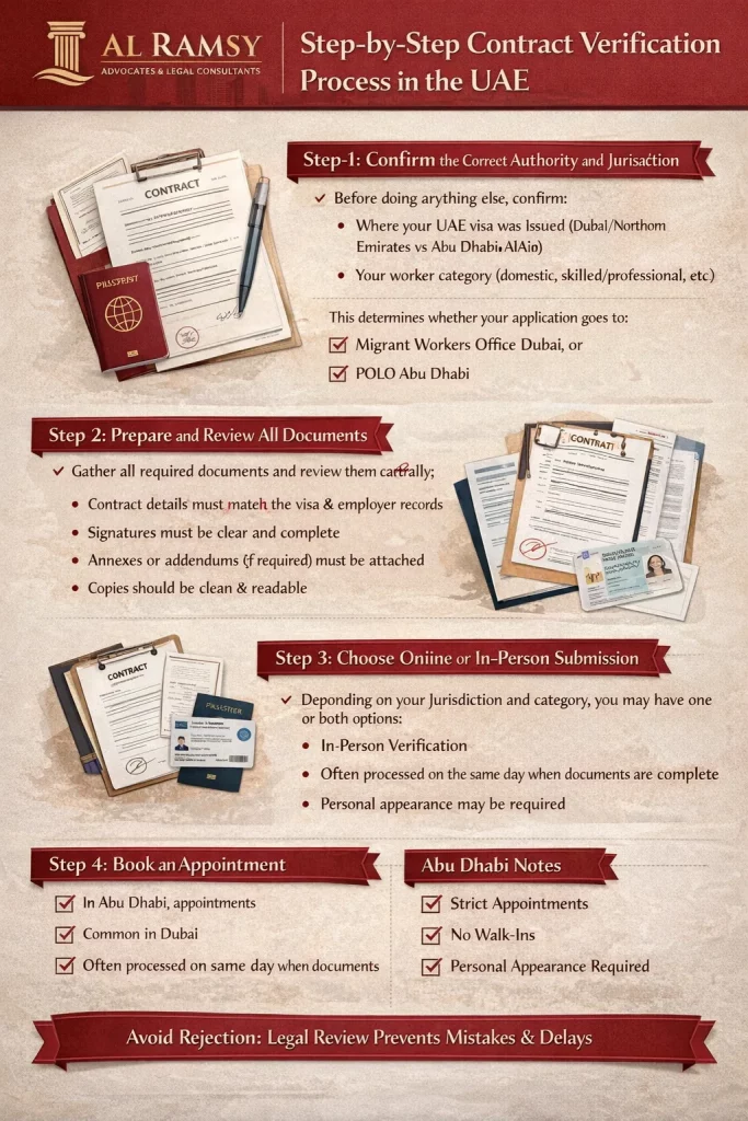 Contract verification is not optional for many workers in the UAE. Whether you must verify your contract—and where you must do it—depends mainly on your worker category and the Emirate that issued your visa.